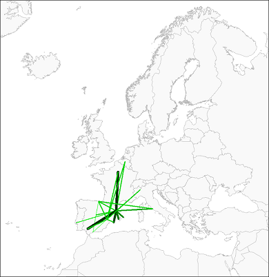 routes offered flights from Barcelona to destinations like Paris, Brussels, and Ibiza."