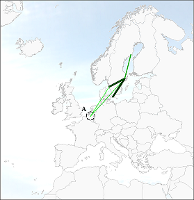 The low-cost carrier Malmo Aviation belongs to the LCC regional type. Figure 51 gives an overview of their network in February and September 2003. In February it had a regional network which was restricted to Sweden. In September the first international flights towards Antwerp, Belgium (point A), where created.